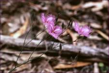 Description : Leaves form a tuft at the base of the plant, and are narrow, linear and 200 to 500 mm long. The flowering stem, bears a Panicle of bright pink flowers, each terminating a branch of the Panicle. Sepals are linear, slightly shorter than the Petals. Petals are oval up to 15mm long, with a thickened mid-rib and a conspicuous fringe, 3mm long. The fruit is a dry capsule.
